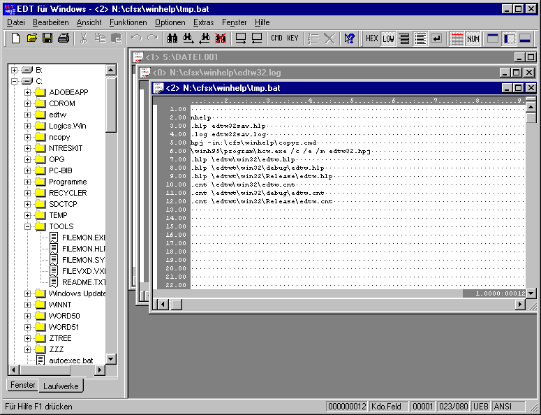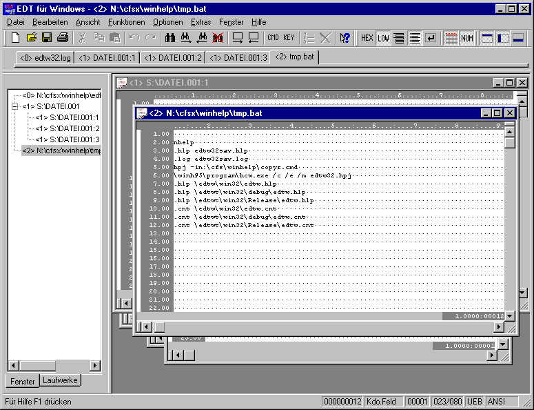 Datenfenster und Baumfenster mit Dateienliste