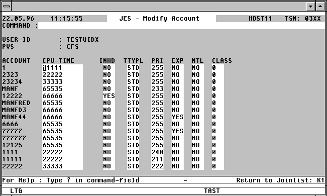 | DLA | Display Logon Access. Es werden die Zugriffsklassen des Joineintrags angezeigt. | ||
