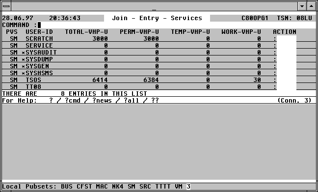 Die Liste wird erzeugt durch Eingabe der User Option