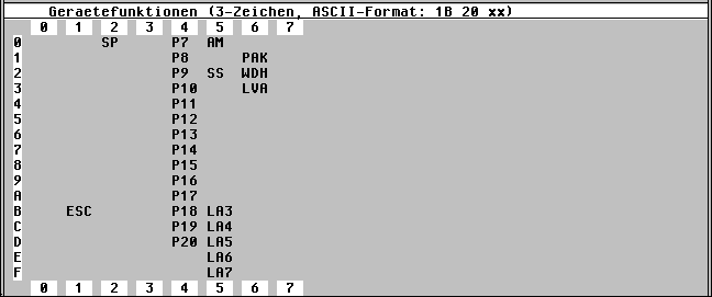 Geraetefunktionen (3-Zeichen, ASCII-Format: 1B 20 xx)