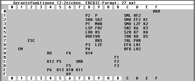 Geraetefunktionen (2-Zeichen, EBCDIC-Format: 27 xx)