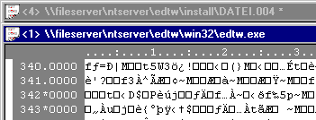 | Ein Stern in der Zeilennummer bedeutet, dass diese Zeile beim Zurückschreiben in eine Datei nicht um ein Satz-Trennzeichen ergänzt wird. Es handelt sich entweder um eine Binärdatei oder der Satz in einer satzstrukturierten Datei ist länger als die maximale Satzlänge. Die Zeile wird mit der nächsten Zeile verkettet. | |