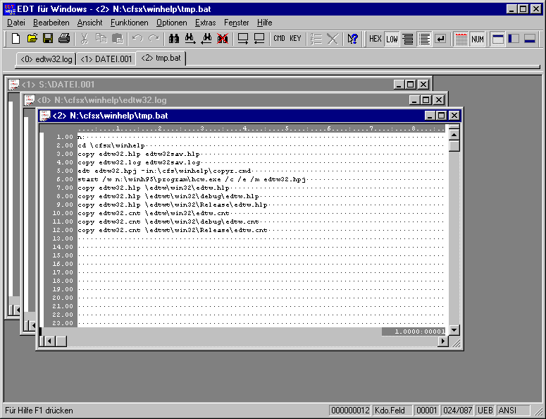 Datenfenster mit Karteikarten