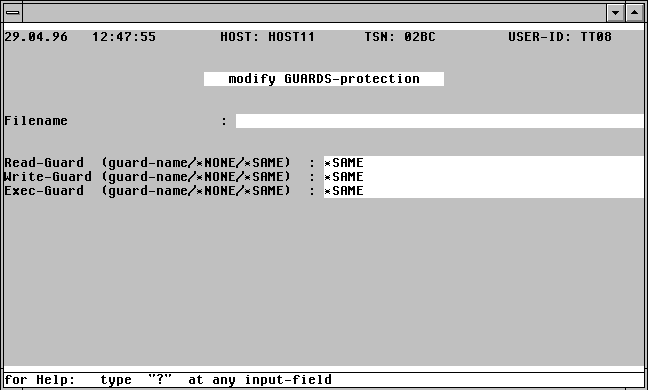 | Das Kommando UID ohne Operanden macht die zuletzt definierte Standard User-Id ungültig. Eine mit UID festgelegte User-Id wirkt erst bei der nächsten Selektion. | |